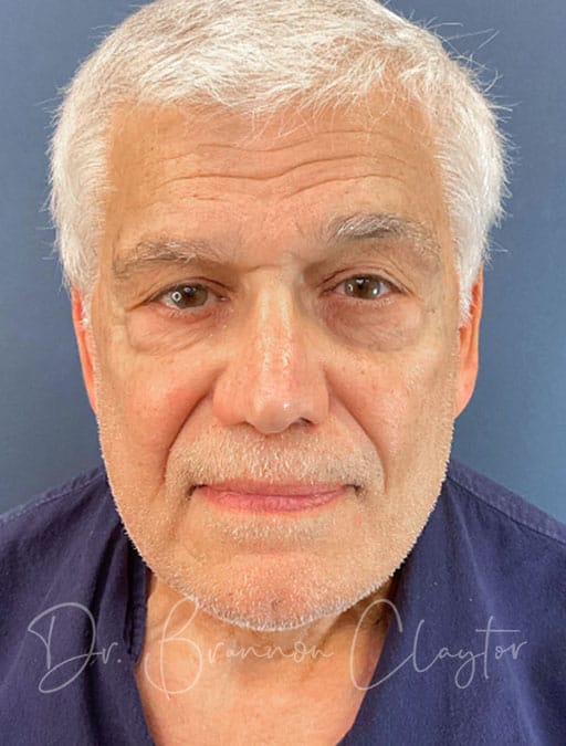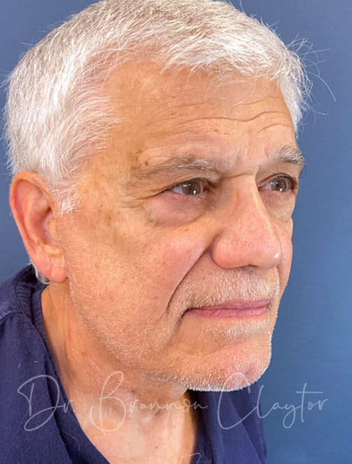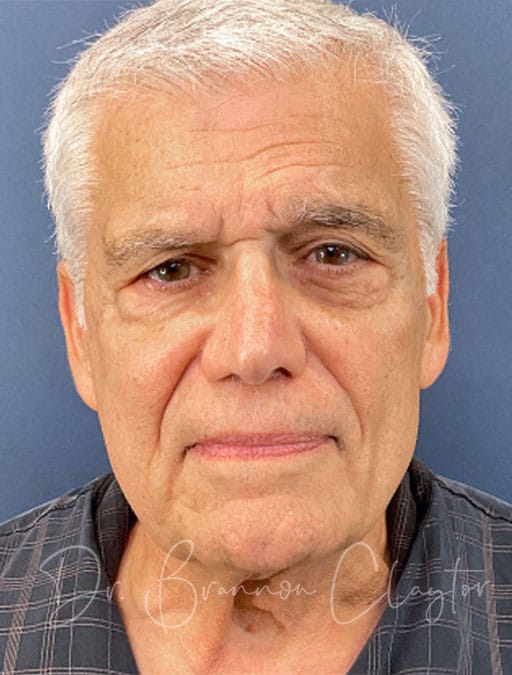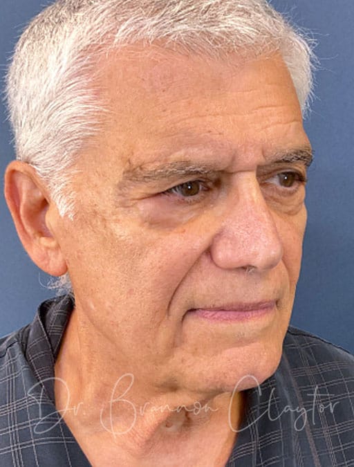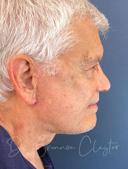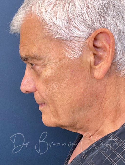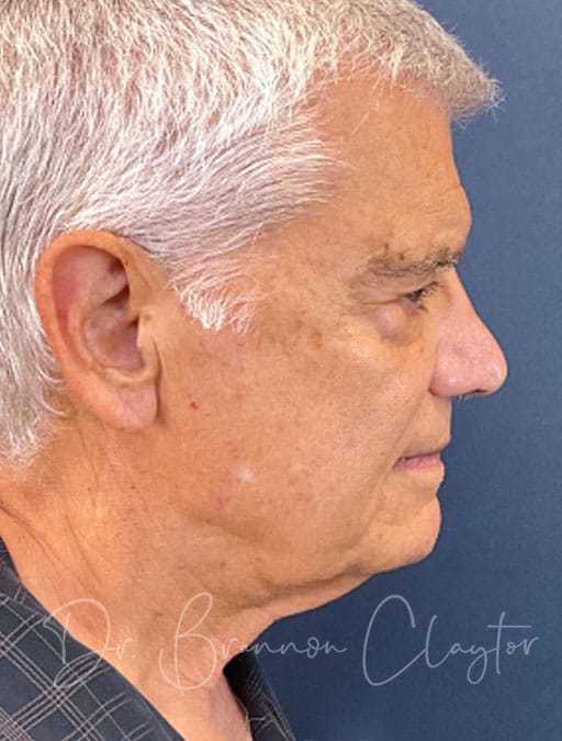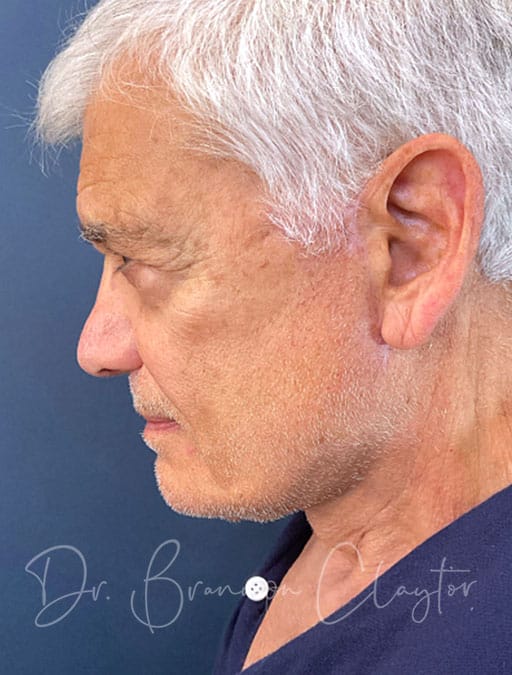 This 76-year-old male patient is shown 1 year post-op following deep plane neck lift performed by Dr. Claytor. The patient desired improvement in facial and neck skin laxity. Dr. Claytor’s deep plane technique addressed loose skin and aging changes in both the neck and lower face, creating natural, masculine results appropriate for his age.