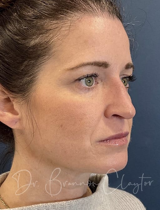 This 42-year-old female patient is shown 2 months post-op following rhinoplasty with septoplasty performed by Dr. Claytor. The patient had a septoplasty 10 years ago but continued to experience breathing difficulties. Dr. Claytor performed a revision rhinoplasty with septoplasty to improve both nasal function and appearance.