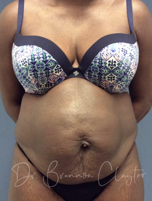 Add to favoritesAdd to favoritesThis 41-year-old female patient is shown 1 year post-op following tummy tuck with hernia repair performed by Dr. Claytor. The patient was unhappy with excess abdominal skin and also needed a hernia repair. Dr. Claytor combined both procedures, removing the excess skin while simultaneously repairing the hernia—addressing both cosmetic and functional concerns in a single surgery.