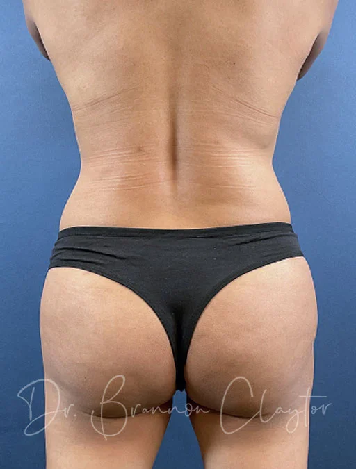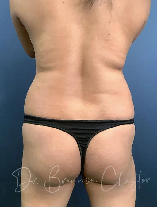 Dr. Claytor’s 32-year-old patient desired a more defined abdomen and buttocks. After photos show 3 months post-op liposuction of the abdomen and flanks with simultaneous fat grafting to her buttocks and “hip dips.”